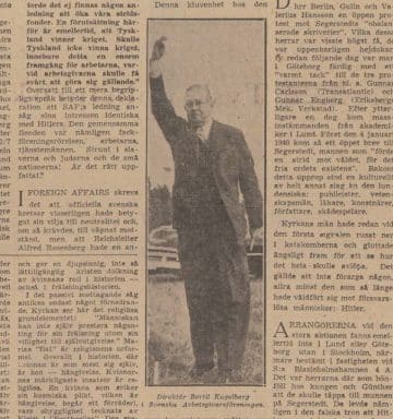 Thor Brunius artikel i anslutning till bilden påstår bland annat att ”…SAFs ledning ansåg sina intressen identiska med Hitlers”. Bilden ger intrycket av att Kugelberg gör Hitlerhälsningen.