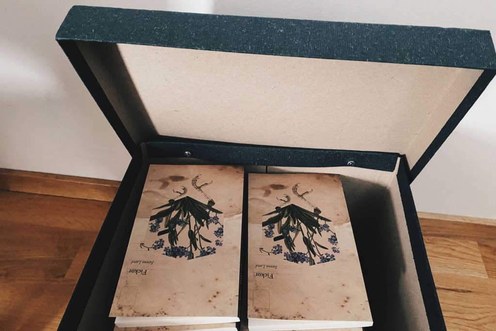 Mitt lilla lager hemma ryms i en större kartong. Jag trycker bara 100 böcker åt gången. Det kostar mer per bok, men de går samtidigt åt.