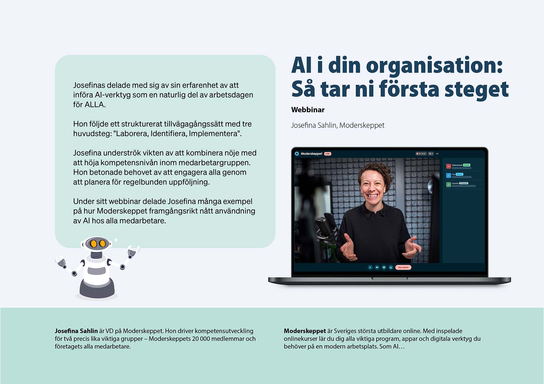 Josefina Sahlins trestegsplan för AI-kompetens hos alla. Skriv ut och läs.